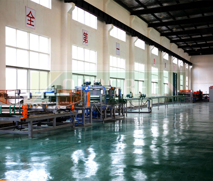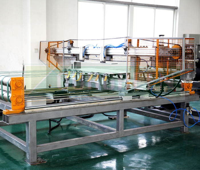 歐格XPS擠塑板生產(chǎn)線上的橫切機(jī)使用特種鋼制刀具將板材裁切成型,其裁切長度可調(diào),以滿足板材型號需要。