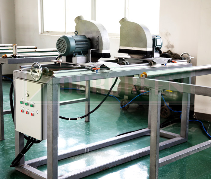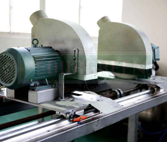 南京歐格設計制造的縱切機利用高速旋轉(zhuǎn)刀片將板材兩邊多余部分切除,切割形狀為直邊角。