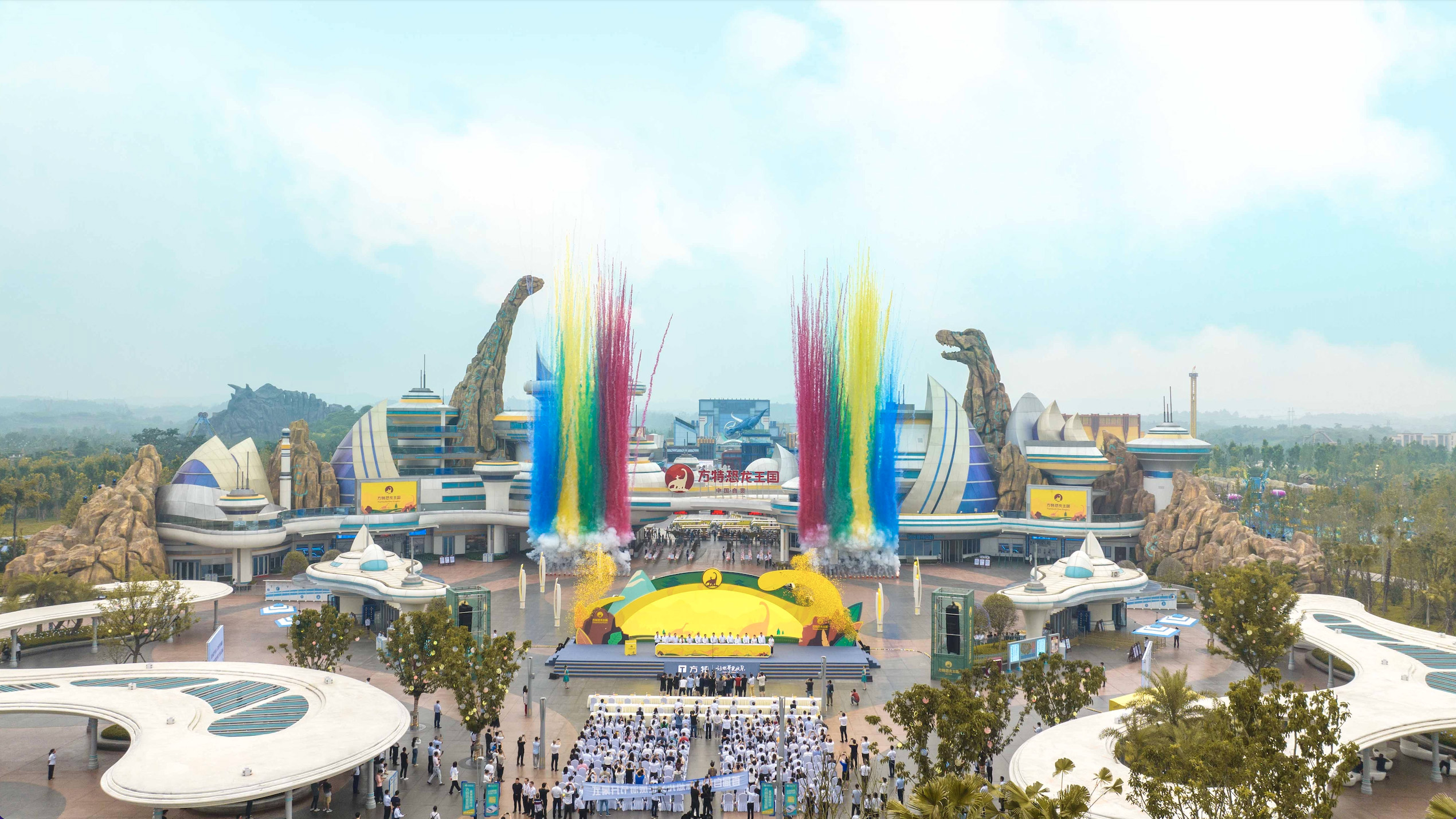 6月18日,四川省重點文化旅游項目“自貢方特恐龍王國”正式開園迎客。上午9時,現場舉行了隆重的開園儀式,儀式現場鼓樂齊鳴、彩煙綻放,在眾多嘉賓與游客的見證下,自貢方特恐龍王國正式開啟歡樂之門。高科技主題景區創新演繹恐龍文化、古蜀文明自貢方特恐龍王國旅游景..